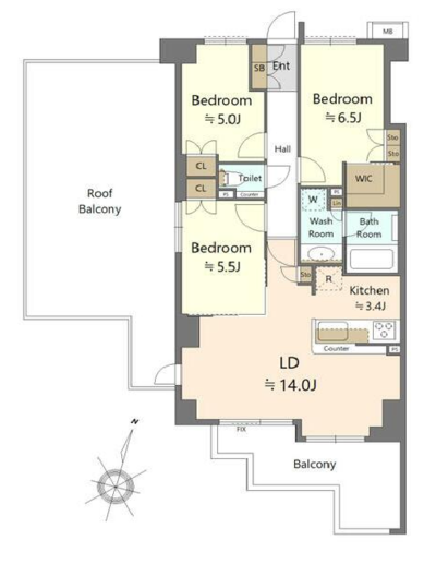 修繕積立金14,160円、ルーフバルコニー 2,250円、ネット使用料 1,100円、その他 1,614円。リビングダイニングキッチン 17.4帖、洋室 6.5帖、洋室 5.5帖、洋室 5帖。ペット可、公営水道、都市ガス、下水、専用バス、専用トイレ、バス・トイレ別、シャワー、ガスコンロ、コンロ三口、システムキッチン、給湯、追焚機能、シャワー付洗面化粧台、エアコン、ウォークインクローゼット、室内洗濯機置場、CATV、オートロック、エレベーター、バルコニー、フローリング、駐輪場あり、バイク置き場あり、光ファイバー、角部屋、TVドアホン、温水洗浄便座、カウンターキッチン、浴室乾燥機、洗面所独立、浴室TV、浴室1坪以上(1.6×1.6m相当)、食器洗い乾燥機、ディスポーザー、防犯カメラ、全居室収納、クローゼット、照明器具付、オートバス、設計住宅性能評価書、建設住宅性能評価書(新築時)、浄水器・活水器、浴室暖房、ルーフバルコニー、断熱窓(複層ガラス、内窓等)、全室フローリング、眺望が良い